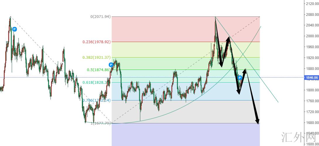 你看日K线,上一周的下挫算是告别了整个2021年迄今的牛市曲线,注意这是曲线,不是水平线,所以整体的大级别回撤支撑依然在1678左右,而这次下挫吐回了美联储11月份的利率会议起涨点后,就没有更深一步下挫,比如到1760左右,证明这黄金接下去依旧有破低需求。