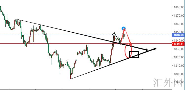 在1845反锁,那肯定是由于依我看来黄金上升阶段会遭遇暂停。