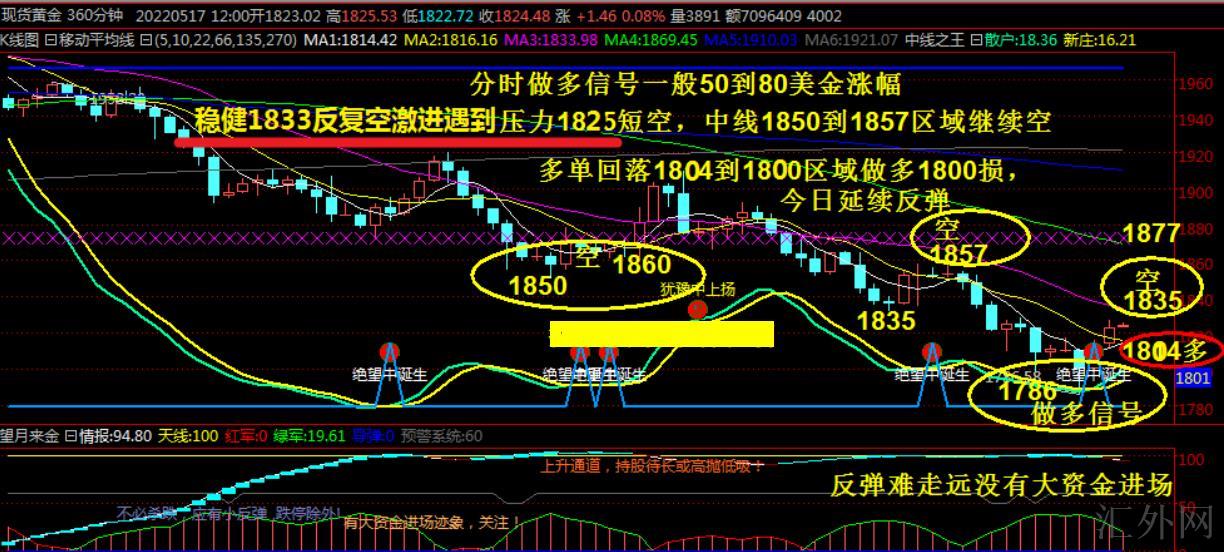 其次就是通道阻力1858到1862区域着重买跌位置,至于支撑当前依旧1818到1813区域,又一次下挫遭遇这个区域也是值得短多博弈回弹,行情突破1807差不多又一次回归1780下计划位置,我们始终坚持一点就是黄金也务必有二次回测,何况6月加息缩表预计仍在,一个乌克兰协商临时终止显现的避险最终昙花一现,周初惯性回弹开放1854上我们只分屁买跌,不要参与任何追多。至于对错市场验证,拭目以待!控制头寸心态风控和我们方向技术剩下进图自如。