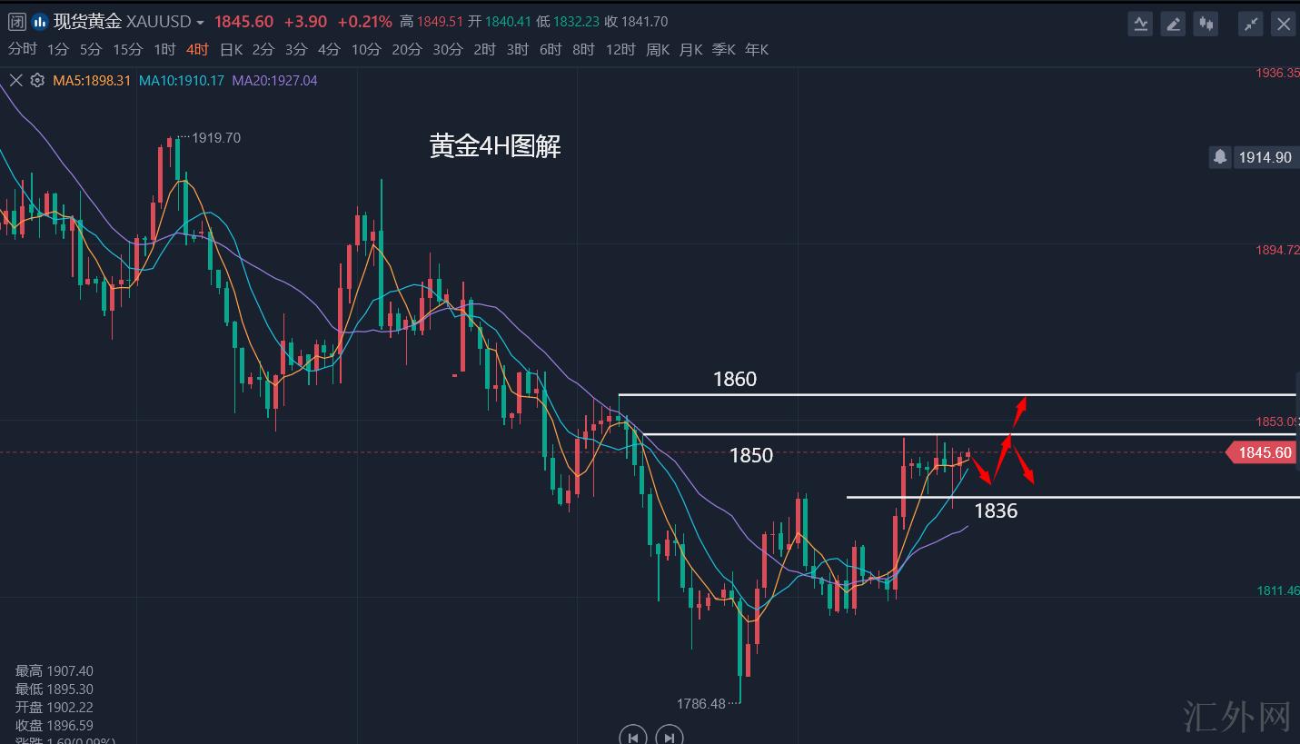 黄金技术分析分析:黄金这周走了一个摸底回涨后,开放了一次扫荡式的上涨,在此之前的三周的行情均是扫荡式的下挫,而到了这周则节奏上倾向于区间扫荡运行,来回的跑,摸底回涨和冲顶回调相互配合。星期一先跌后涨,破低后摸底回涨上升,星期二先涨后跌,破高后冲顶回调下挫,星期三则是先跌后涨,再跌再涨向往上击穿高。星期四经历连续收窄修正,先跌后涨,直接走了保持性的上涨,一气呵成升高到达1849区域,收盘盘整调动。星期五亚盘价格遇阻回踩1836名置,确定支撑后再次升高到达1849上方区域。1849-1850规模是作为从1890下挫到1786的黄金分割0.618的位置,此处也将决定整体下挫行情节奏。空间修正是黄金今年的修正方式,修正的强度和程度将直接影响到行情的区域规模,一旦显现修正过分,则整体行情的方向就会发生改变。所以,对于此处位置就尤为重要了,向下关注提到的此外两个支撑点位置。一是回踩确定的支持点,1826,1832,一个是四小时的生命线分界也是这一次上升的0.618名置在1823-1822区域。