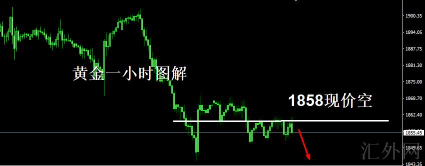 黄金一小时k线一直在1858左右来回震荡,震荡一天,同期上方压力位1860一线任然坚挺着,k线未能立住,这也示意着卖方的痕迹,以下支撑点1850一线被突破后,就是增速下探,美联储提早布局,干脆利索干,1858一线直接空