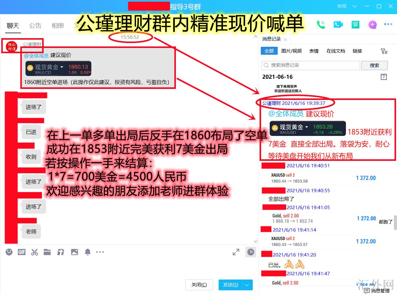 黄金痛跌群内空单大获全胜41美金附黄金后市交易参考。24小时实时在线解一套