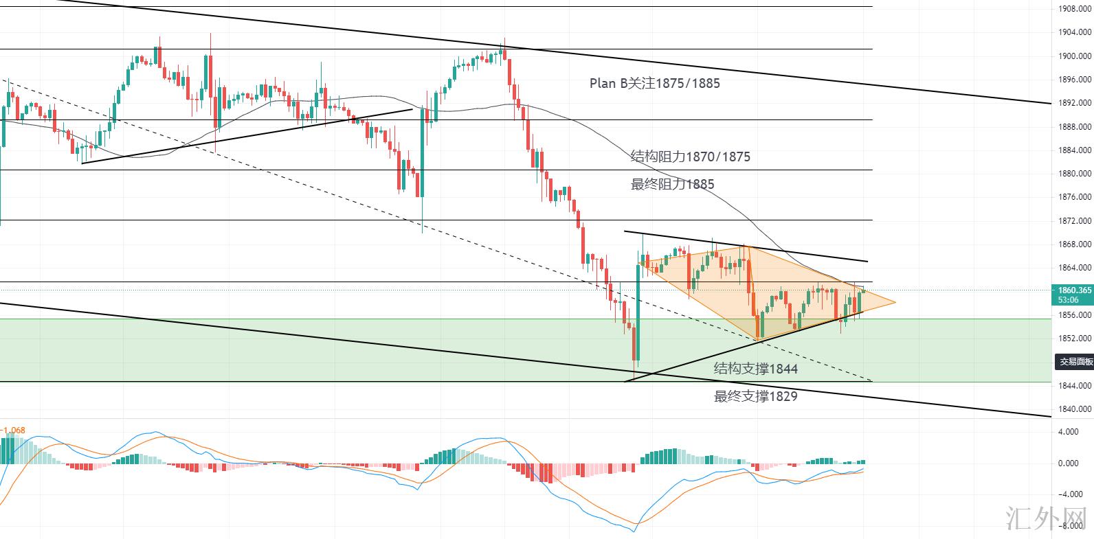 距离两点仅剩两个小时了,又一次强调,买方的最后防线在1844,跌穿直接去看1829困难不大,换言之,假使你不小心在1880上方多,起码扛50美金,不说净值,只说心态很难受甚至或许影响你的后续进场。所以该跳车就跳车,留得青山在不怕没柴烧。至于在1844撑住上涨了,异常好,那就表明买方尚有喘息余地。注意,是余地不是反转。所以当前的情形对买方实在算不上友好,具体的位置,先突破1860的抑制上升到1875之上,防线1885附近。