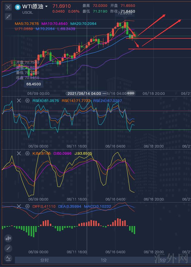 6.17原油策略:1、激进派71.5-71.7买涨;2、稳健者70.6左右买涨;3、稳健者72.8-73买跌!