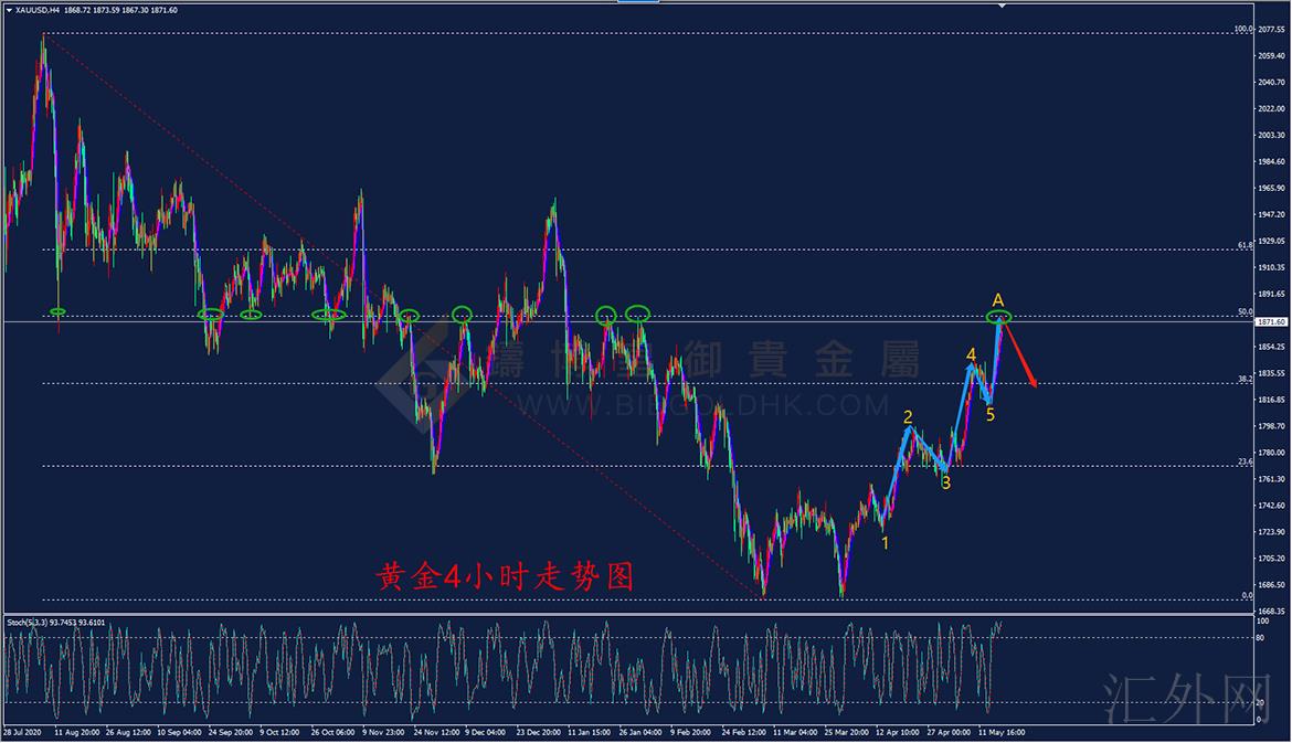 从下面的图金子4钟头图看来,金子持续上破1848.0周边和1860.0周边两条副本增涨至1874.0周边,从斐波那契性能指标上看,金子自2075.0周边逐渐下挫至1676.0周边以后逐渐减仓,现阶段市场行情减仓至0.5位置1876.0区段,另外该区段为早期下挫的起跌点工作压力部位周边,料对金子造成摩擦阻力;从性能指标Stoch上看,指标值处在上位地区,产生2次均线多头排列,有下滑调节要求;从K线形状上看,市场行情自圆弧底构造上行下行打开升高浪形构造,现阶段构造浪上处在升高极速5浪拉涨,因此 在浪型构造上,K线造成调节的要求;总的来说:市场行情或将上行下行拉涨摩擦阻力部位以后,事后市场行情料将开展下滑调节。提议上行下行摩擦阻力部位周边套单实际操作,等候销售市场方位的引导.
