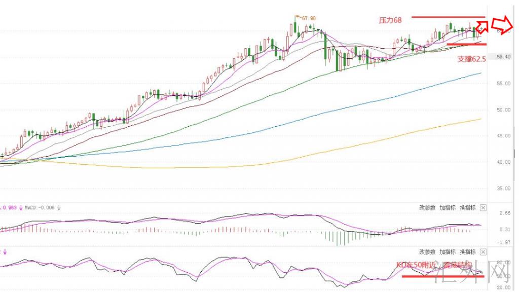 技术面,短期内移动平均线展现担心趋势,下边60日移动平均线有较强支撑点,但10日、20日均并沒有太强支撑点。KD 在50周边,波动构造。