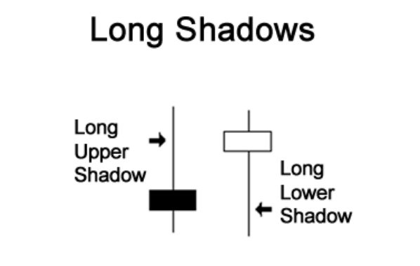 带长影线的蜡烛线显示出,时段内交易活跃,时段内交易远超出开盘价和收盘价水平。
