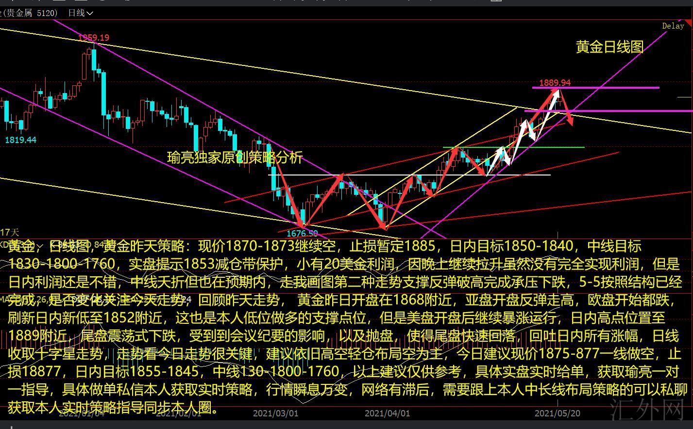 金子,日曲线图,金子昨日对策:市场价1870-1873再次空,股票止损待定1885,日内总体目标1850-1840,中心线总体目标1830-1800-1760,实盘提醒1853减持带维护,小有20美金盈利,因夜里再次拉涨尽管沒有彻底完成盈利,可是日内盈利或是非常好,中心线夭亡但也在预估内,走我绘图第二种行情支撑点反跳破高进行耐压下挫,回望昨日行情, 金子昨日新房开盘在1868周边,亚洲盘新房开盘反跳上涨,欧盘逐渐都跌,更新日内最低至1852周边,这也是自己底位开多的支点位,可是美盘新房开盘后再次疯涨运作,日内高些部位至1889周边,收盘波动式下挫,遭受到会议记录的危害,及其抛单,促使收盘迅速下降,反吐日内全部上涨幅度,日线扣除十字星行情,行情看今日行情很重要,提议依然高处轻仓合理布局空为主导,今日提议市场价1875-877一线看空,股票止损18877,日内总体目标1855-1845,中心线130-1800-1760,之上提议仅作参考,实际实盘即时给单,获得瑜亮一对一具体指导,实际期货操作私聊自己获得即时对策,市场行情变幻莫测,互联网有落后,必须紧跟自己股票短线合理布局对策的能够私信获得自己即时对策具体指导同歩自己圈。