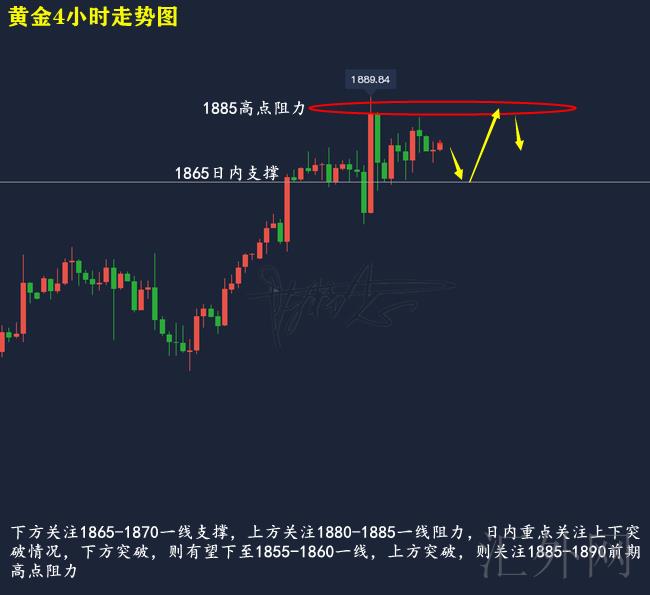 金子技术面来剖析,日网上,隔日金子借助MA5日移动平均线回暖,盘里跌涨变换,持于缩量横盘,最后取得携带长下影线的中阳,日网上,今日市场行情新房开盘再次持于MA5日移动平均线上边彷徨,预估仍有横盘整理的概率,重点关注MA5日移动平均线的支撑点实际效果,若跌破,则有希望进一步往下检测;4钟头上,隔日金子持于中下轨横盘整理运作,当今布林线指标处在直口期,MA移动平均线三线往前,KDJ随机指标三线闭拢往上,MACD指标值翠绿色机械能柱不断放量上涨,速度线均线多头排列往下,综合性看来,金子现阶段仍处在横盘整理当中,日内提议高处低多开展实际操作,上边关心1880-1885一线摩擦阻力,下边关心1865-1870一线支撑点,日内重点关注左右提升状况,若下边提升则或将跌去1855-1860一线周边,若上边提升则关心1885-1890一线摩擦阻力。