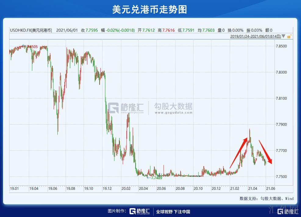今年2月,美元兑港币汇率从7.75强势一方松动,并大幅上行,资金流出香港回流美国,汇率走贬。同期2月18日至3月底,不管是港股、还是A股迎来了一波急速的大调整。