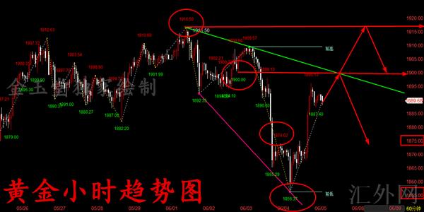 若行情直接震荡再度突破了1900,价格就会转为震荡偏多,届时需要关注低吸做多机会。市场的短线支撑在1900附近。若价格突破1900,则回调1900附近再做多单,向上去看1960目标。一旦触及到1910-1916前期高点,关注小波段空单机会,去看1905附近。