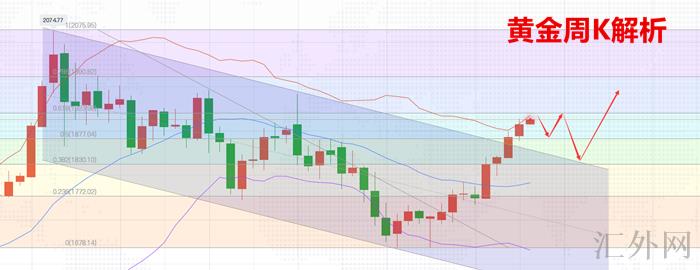 分析:在基本面下,近期黄金实际还是看涨,或延续上周的行情。上周黄金大涨大跌,周线在高位收一根长下引线的阴k线,但站稳在均线之上,所以,本周大方向看还是偏涨,如果继续冲高,则要试探前高1918,破位可上涨至1960。
