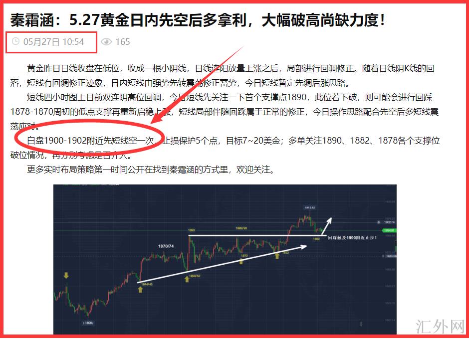 再看下图,上上周周四上午公开的思路建议1902点位开空,行情午盘如期给到点位,十几点利润!如果你关注到并跟上的话,就算只按照两手操作,只操作也白送给你两千多美金!