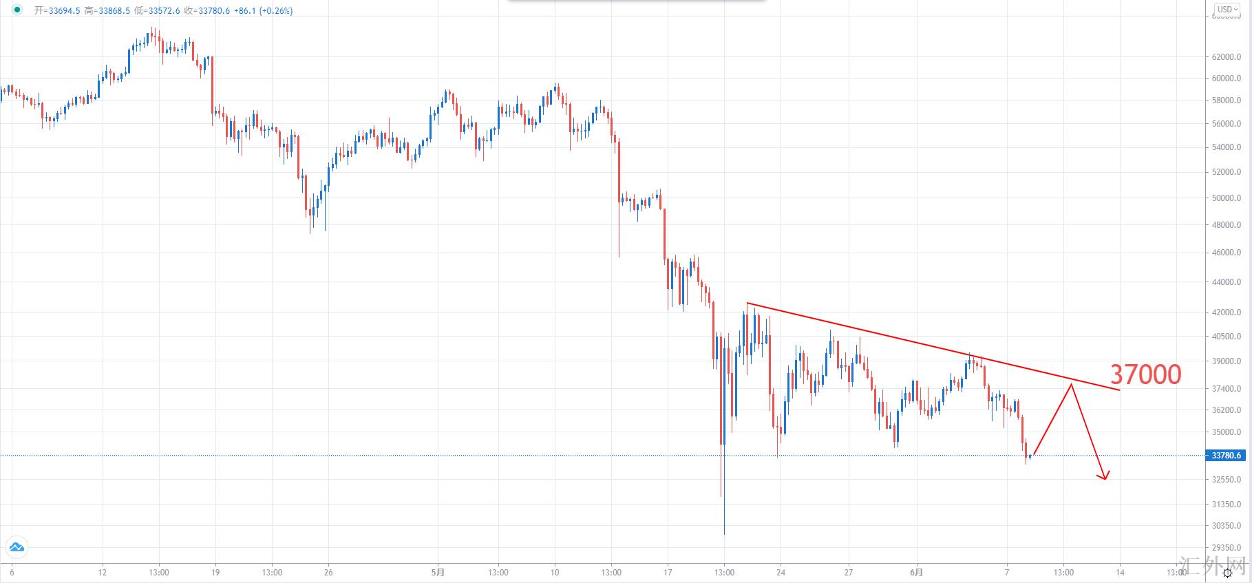 比特币延续周末跌势,来自萨尔瓦多和Square Inc.的潜在积极催化剂并未能缓解投资者对监管风险的担忧。6月8日,比特币一度跌破34000美元大关。