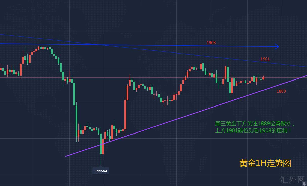 黄金操作建议:下方1889直接多,止损1884,目标看1901突破看1908!!!!