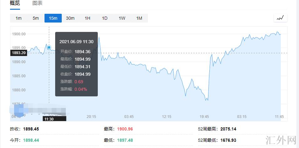 黄金现货星期四日内震荡下探,美国消费者物价指数数据发布后上演多空双杀剧情,随后连续上升并往上击穿1890美元,最终上涨收盘0.52%,报1898.30美元每盎司。