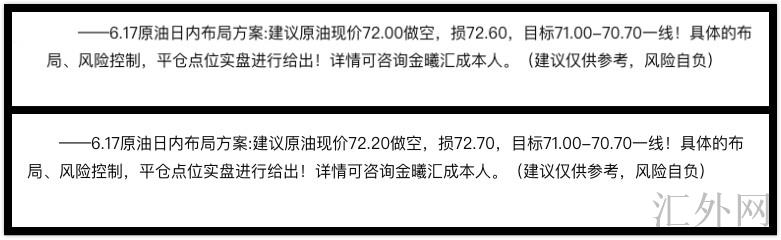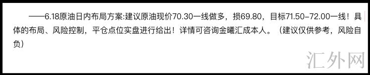 ——下周原油日间布局方案:推荐原油72.00一线买跌,损72.50,计划71.00-70.00一线!具体的布局、风险控制,平仓点位实盘执行给出!详情可咨询金曦汇成本人。(推荐仅供参考,风险自负)
