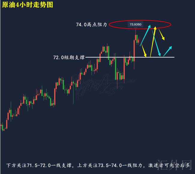 71.5-72.0左右买涨,止损0.5美金,计划看73.0-73.5左右;