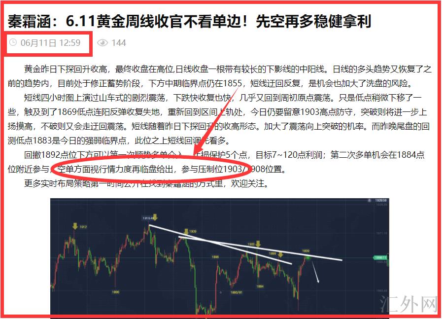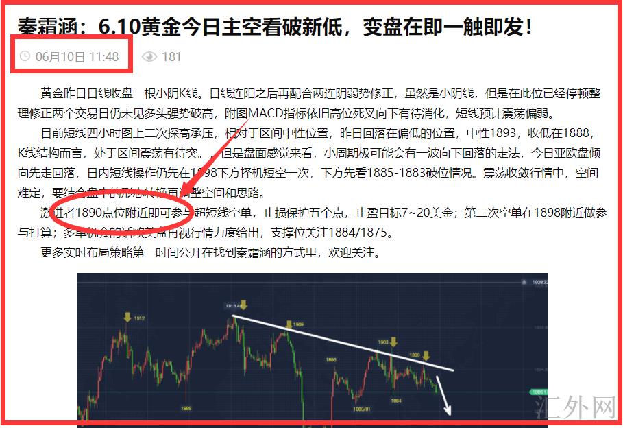如下图,上周星期四推荐1890左右空,行情给到1889点位,完全有机会介入,跟上布局的,一单又是值得直接拿到10~18个点利润,跟上就是赚到,从不夸张!