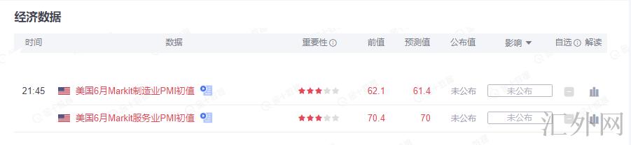 今夜不多说了,夜间关注一下美国6月Markit制造业PMI、服务业PMI报告,两个报告对经济和通货膨胀预计将供应一定指示。