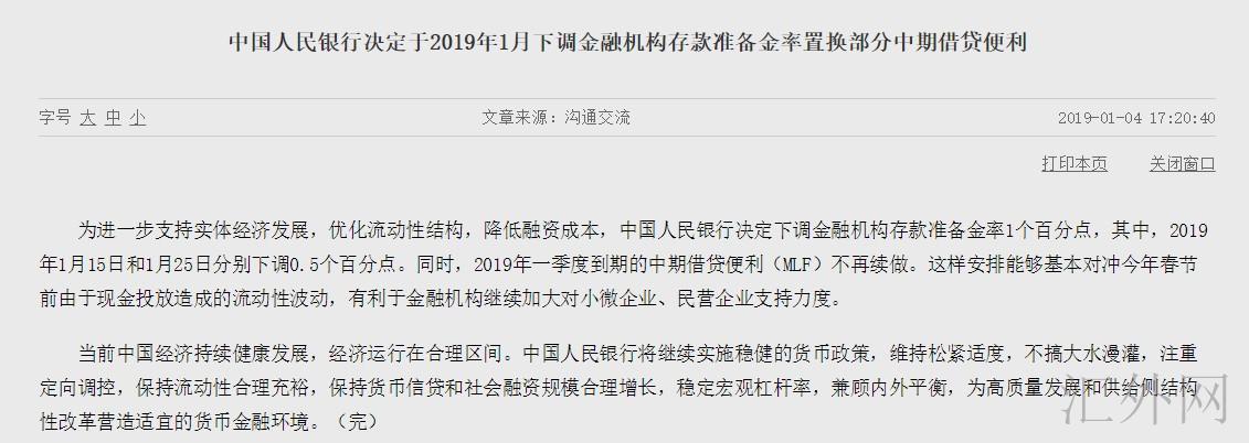 北京市情况下周五(1月4日)中央人民银行发布消息称,为进一步适用中国实体经济发展趋势,提升流通性构造,减少资金成本,中央人民银行决策下降金融企业储蓄储蓄率一个点,在其中,2019年1月15日和1月25日各自下降0.五个点...