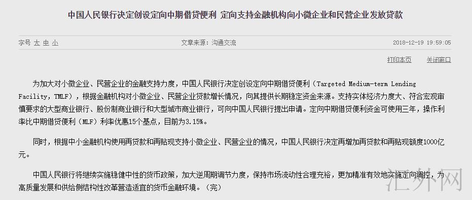 2019年1月23日,中央人民银行执行定项中后期借款便捷(TMLF),TMLF资产可应用三年,实际操作年利率比中后期借款便捷(MLF)年利率特惠15个基准点,现阶段为3.15%,且最多限期为三年。 TMLF也被外部称之为...