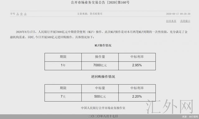 7000亿!中央银行神作MLF来的恰好是情况下 也有500亿逆回购