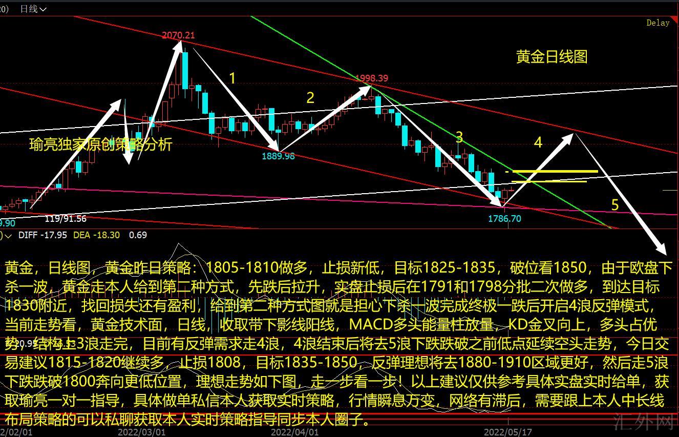 黄金,日K图,黄金昨日策略:1805-1810买涨,止损新低,计划1825-1835,突破看1850,受于欧盘下杀一次,黄金走本人给到第...