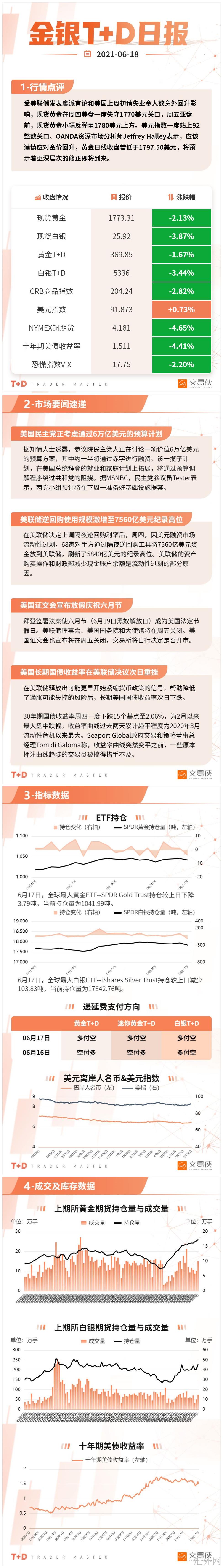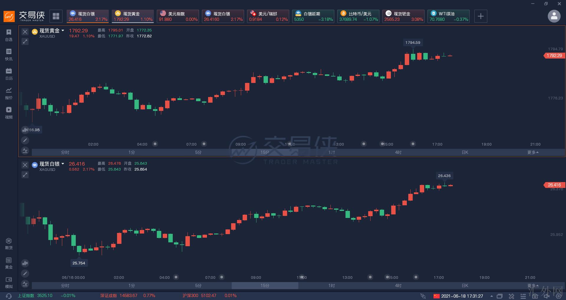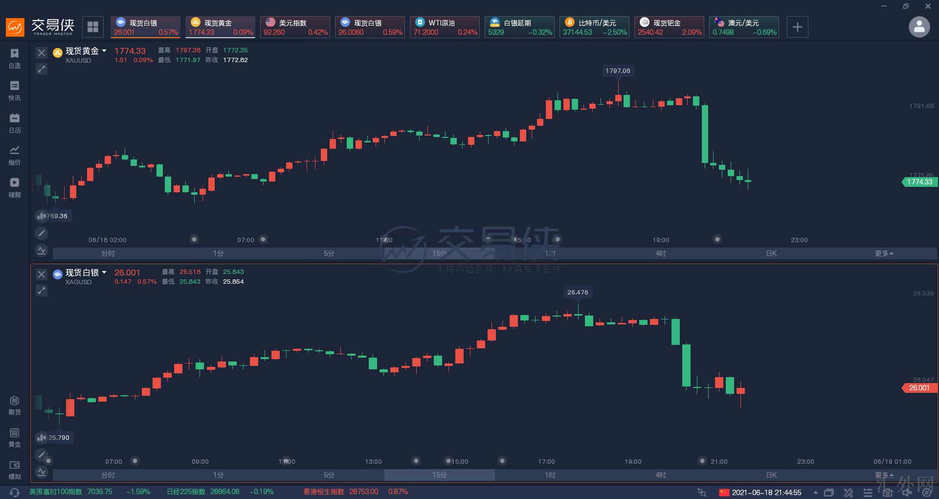 星期五(6月18号)欧盘开盘之出,黄金现货立稳1790美元每盎司,日间涨超1%。现货白银涨超2%。而美元指数日间靠近打平。受美联储放鹰影响,贵金属市场惨淡。黄金隔夜狂泻差不多60美元,白银最多跌穿26美元每盎司,创下5月...