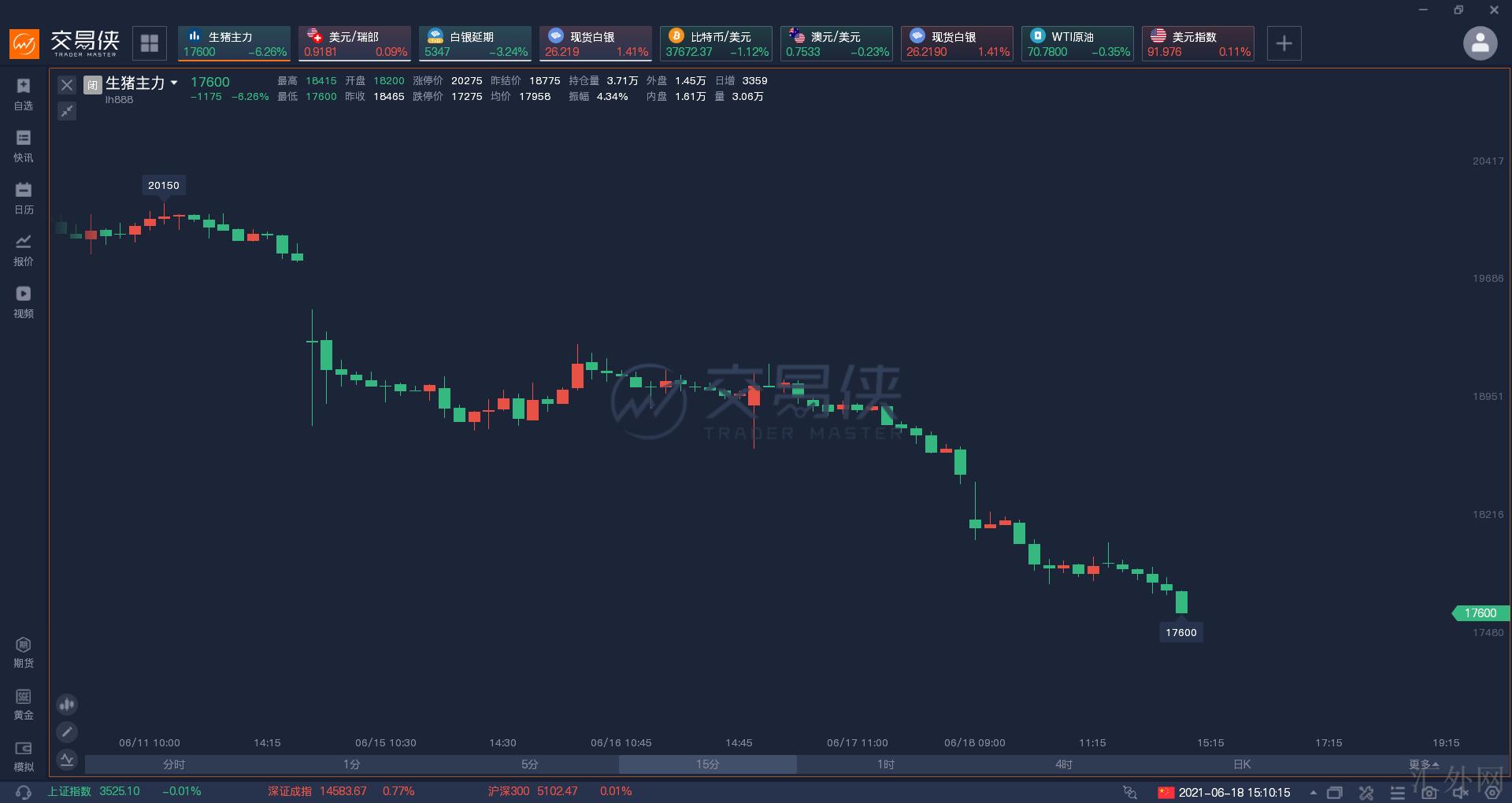 近期,生猪价格一泻千里,甚至跌上热搜。汇外网期货6月18号讯,据农业农村部监测,2021年6月7号—6月13号,全国范围以上生猪定点屠宰企业生猪平均收购价格为16.79元/公斤,环比下滑6.7%,同比下滑47.3%。白条...