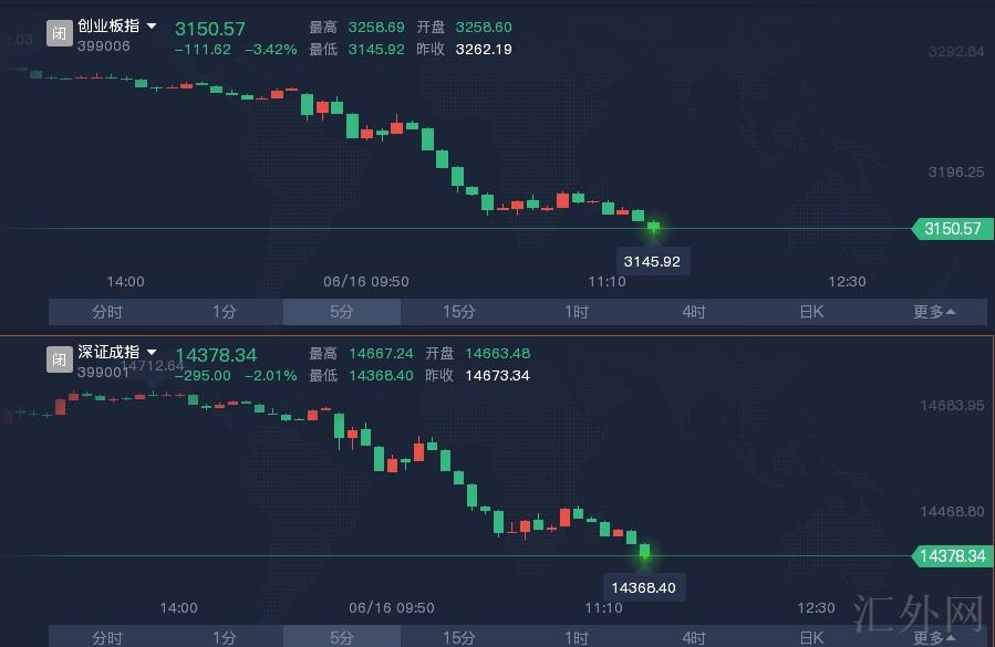 星期三亚盘,创业板指失守3200关键点位,降幅扩大到3%;深证成指跌超2%。盘面向上瞧,电力板块、白酒概念、数字货币板块以及汽车板块指数集体走软;5G概念股逆市冲顶,东方通信涨停,硕贝德、广哈通信、吉大通信、东信和平等跟...
