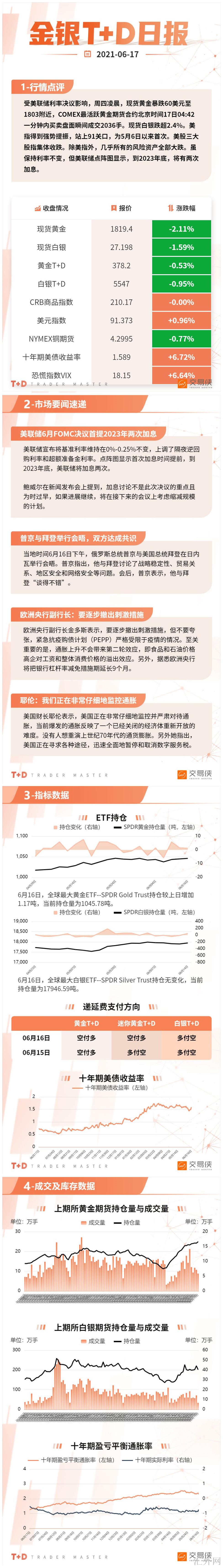 北京时间星期四(6月17号)凌晨2点,美联储公布6月FOMC利率会议,保持联邦基金利率在0-0.25%区间并维持1200亿美元购债规划的同期,第一次示意2023年末前两次加息,导致黄金痛跌,美债益率和美元暴涨。FOMC声...