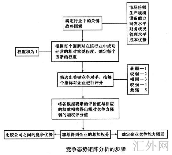 竞争态势矩阵(CPM矩阵) 竞争态势矩阵(Competitive Profile Matrix,CPM矩阵)用于证实企业的首要竞争对手及相对于该企业的战略地位,以及首要竞争对手...