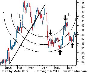 A charting technique consisting of three curved lines that are drawn for the purpose of ...
