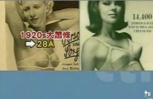《大英帝国胸部史》表示,在1920年到1940年经济大萧条期间,女性平均罩杯只有28A,然而在经济渐渐转好的50年代,女性胸部“一暝大一吋(英寸)”,增到30B,在60年代,...