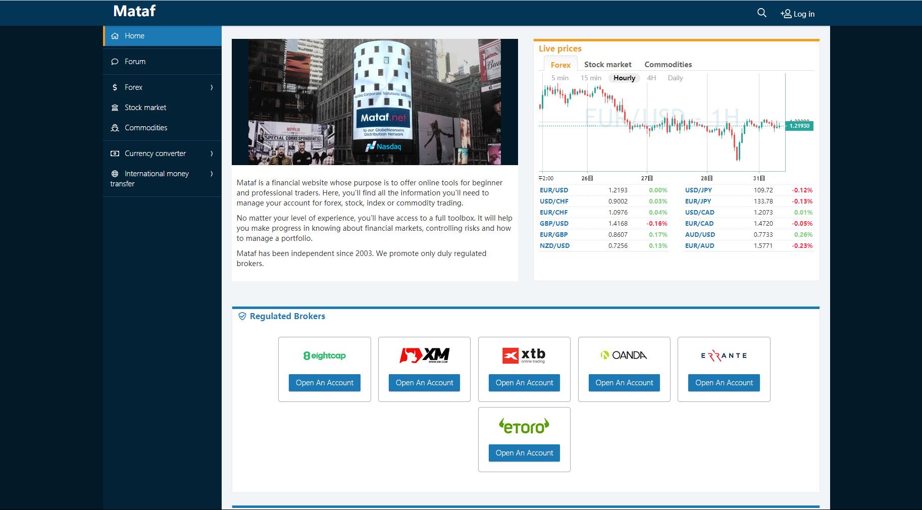 Mataf是一个金融网站,旨在为初学者和专业交易者提供在线工具。在这里,您会找到管理外汇,股票,指数或商品交易帐户所需的所有信息。